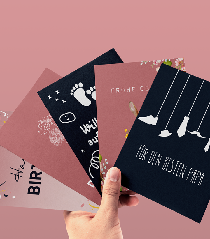Du wählst ein Design, lädst dein Video hoch und schließt die Bestellung wie gewohnt ab. In wenigen Tagen erhältst du deine Karte per Post – fix & fertig.